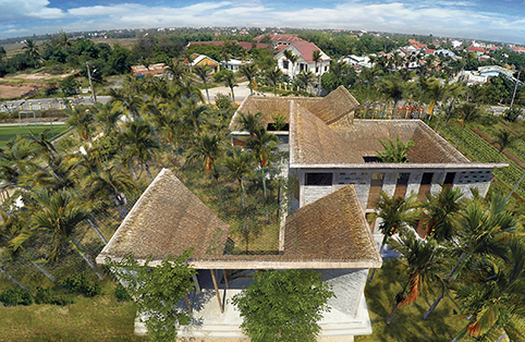 Trung tâm cộng đồng Cẩm Thanh nằm giữa vườn cau, cộng sinh thân thiện với môi trường
