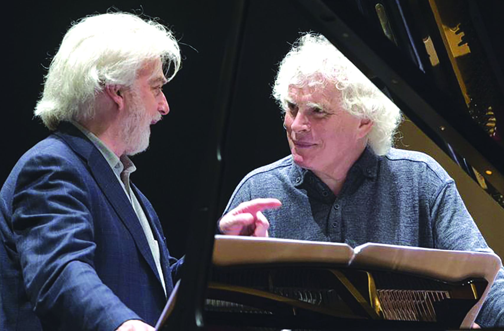 Krystian Zimerman (trái) và nhạc trưởng Simon Rattle trình diễntác phẩm “The Age of Anxiety” (tạm dịch: Thời đại Âu lo) của Bernstein. Nguồn: Berlin Philharmonic.