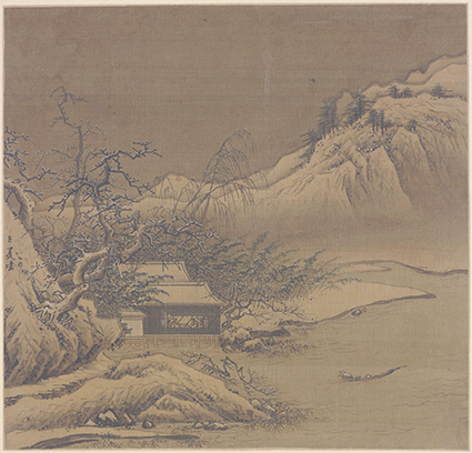 Tuyết đường khách thoại đồ (Hạ Khuê). Mực trên lụa. 29,5 cm – 28,2 cm. Bảo tàng cố cung Bắc Kinh.