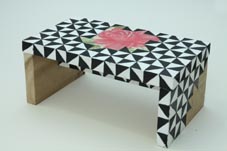Cái đời sống ấy đã dần giúp bà phát hiện ra rất nhiều nguyên liệu mới cho nghệ thuật mà nghệ sĩ Việt thứ thiệt hoàn toàn bị bất ngờ: vỉ hấp xôi, những chiếc bàn nhỏ gọn, dùng để bán đồ ăn vỉa hè hoặc cho trẻ em học bài, có thể gấp gọn chân lại; những chiếc ghế nhỏ bằng gỗ, vốn được người Việt ưa dùng khi ngồi nấu bếp, giặt giũ mà nay được thay bằng chất liệu nhựa xanh đỏ,… Bề mặt những chiếc bàn nhỏ bằng nhựa mica, in hoa văn đa dạng. Maritta đã phát triển những hoa văn đó lên thành như nền, thậm chí là một phần của sáng tác. Bà vẽ thêm lên đó những nét vẽ mới, có thể là hình bông hoa, có thể là hình tượng phật, có thể là một dáng ngồi thiền, đem lại sự ngạc nhiên, bất ngờ, và phần nào thay đổi cách nhìn về một đồ vật thông dụng.