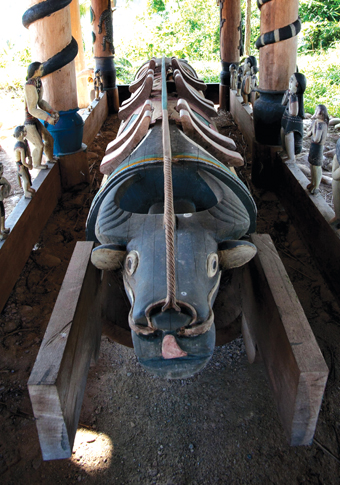 Quan tài và chạm khắc bên trong nhà mồ K’tu, làng văn hóa dân tộc, trung tâm huyện Tây Giang, Quảng Nam |