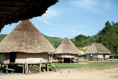 Dãy nhà Đong xung quanh khu vực dành cho cộng đồng, Bhươl (thôn) Arởh, xã Lăng, Tây Giang, Quảng Nam. |