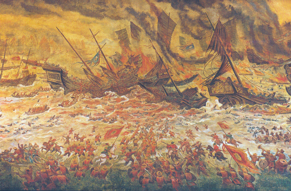 Trận Bạch Đằng trong cuộc chiến Nguyên Mông lần thứ 3, 1288. Tranh: Lê Năng Hiển