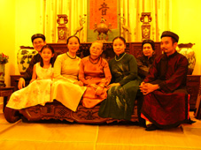 ![]() Bạch Dương và con gái Diệu Thảo bên nghệ sĩ Kim Đức |
