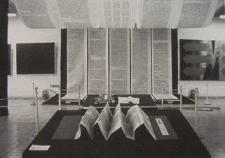 Một trong những tác phẩm đáng ghi nhận nhất là tác phẩm sắp đặt “Cuốn sách trời” của Xu Bing. Cho đến giờ, Xu Bing vẫn là người tiên phong trong trào lưu nghệ thuật đương đại Trung Quốc. Tác phẩm của ông được làm từ 4000 ký tự vô nghĩa của Tiếng Hán. Ông khắc chúng vào những con triện theo kiểu Nhà Tống (thế kỷ 11) sau đó bày tác phẩm của mình dưới dạng tranh trục. Ông đã làm việc này trong 3 năm từ 1987 đến 1991 với một công việc nhàm chán là ngồi khắc dấu, nó giống như việc ngồi cầu nguyện vào mỗi buổi sáng, quá trình làm là quan trọng hơn kết quả. Tác phẩm như một đài tưởng niệm với một ý nghĩa rất sâu sa.