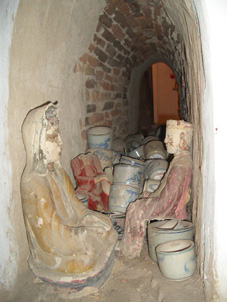 | Những pho tượng cổ chùa Trần Đăng- Hà Tây bị để trong gầm ban thờ, nhường chỗ cho những pho tượng mới to lớn hơn, sơn son thiếp vàng rực rỡ | ![]() |