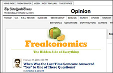Kể từ khi xuất bản cuốn sách bán chạy hàng đầu ở Mỹ năm 2005, Freakonomics, nhà báo Stephen Dubner và kinh tế gia Steven Levitt liên tục thuyết phục những ai chịu lắng nghe rằng đa số cuộc sống thường ngày có thể được lý giải bởi lý thuyết kinh tế. Sau khi nền kinh tế lao xuống vực thẳm, đã đến lúc phải nói: vâng, chúng tôi đang muốn nghe tiếp đây. Freakonomics blog, một trong số các blog liên kết với tờ New York Times nay trở nên quan trọng hơn bao giờ hết khi cuộc sống của tất cả mọi người ít nhiều đều bị tác động bởi cơn bão kinh tế. Có lúc nó thông báo cho ta biết rằng từ khoá “khuyến mãi” được tìm kiếm trên google nhiều hơn cả “Britney Spears”, hay phân tích tại sao khủng hoảng tài chính lại tốt cho các ông bà ngoại, hoặc chỉ ra điểm tương đồng giữa các nhà kinh tế với rác thải (chẳng có đảng phái nào chịu nhặt lên cả), Freakonomics là sự nhắc nhở thường ngày với chúng ta rằng cuộc sống về cơ bản là trò chơi của cung và cầu.Zen Habits
