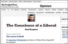 Bạn cần có một giải Nobel kinh tế để hiểu tại sao nền kinh tế đi sai đường và làm cách nào chỉnh nó theo hướng đúng. Paul Krugman vừa đủ tiêu chuẩn. Là giáo sư kinh tế Đại học Princeton và là cộng tác viên của tờ New York Times, đoạt giải Nobel năm 2008 cho đóng góp về Lý thuyết thương mại quốc tế, nhưng chính là những dòng blog sắc sảo, rành rọt của ông đã biến thứ khoa học mờ ảo này thành dễ hiểu, thậm chí gây hứng thú cho mọi người. The Conscience of a Liberal là sự hỗ trợ thông tin từ trên mạng cho các bài viết hai lần một tuần trên báo của Krugman, cung cấp trường thông tin rộng hơn, với những tri thức bổ sung giúp phân tích mớ hiện thực hỗn độn của nền kinh tế. Krugman là một trong số ít nhà kinh tế dự đoán đúng về sự vỡ bung của mớ bong bóng tài chính trước khi các con số hiện thực xác minh quan điểm của ông. Điều đó đủ khiến chúng ta cần lưu tâm tới các phân tích của ông về những nỗ lực của Chính phủ trong việc điều chỉnh lại nền kinh tế.