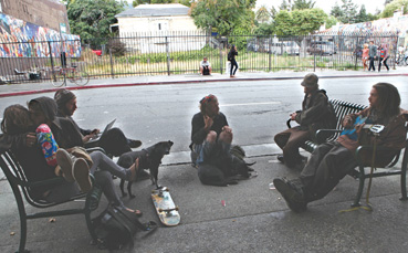 |Người đàn ông ngồi ở trước cổng trường Đại học Berkeley, ông ta bán những tấm biển, mỗi tấm thể hiện một quan điểm sống nào đó. Ví dụ: Suy nghĩ thật nghiêm túc, Cho nền hòa bình một cơ hội… |