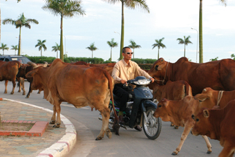 ![]() Đàn bò của một gia đình thuộc khu Mỹ Đình đang được đưa đi chăn thả qua sân vận động Mỹ Đình – sân vận động lớn nhất Đông Dương |