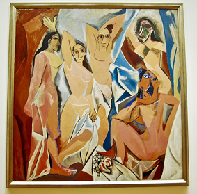 Hai bức tranh nổi tiếng nhất của Picasso đã trở thành biểu tượng. Đó là “Những cô nàng ở Avignon” và “Guernica”. Khi ông trưng ra bức “Những cô nàng ở Avignon” vào năm 1907 trong xưởng vẽ Bateau-Lavoir, mọi người đều cảm thấy kinh hoàng. Những người bạn của ông như Apollinaire, Braque, Matisse không thể hiểu nổi việc ông quay trở lại với xu hướng nguyên thủy. Năm 1924, Jacques Doucet, một nhà thiết kế thời trang đã mua tác phẩm này.