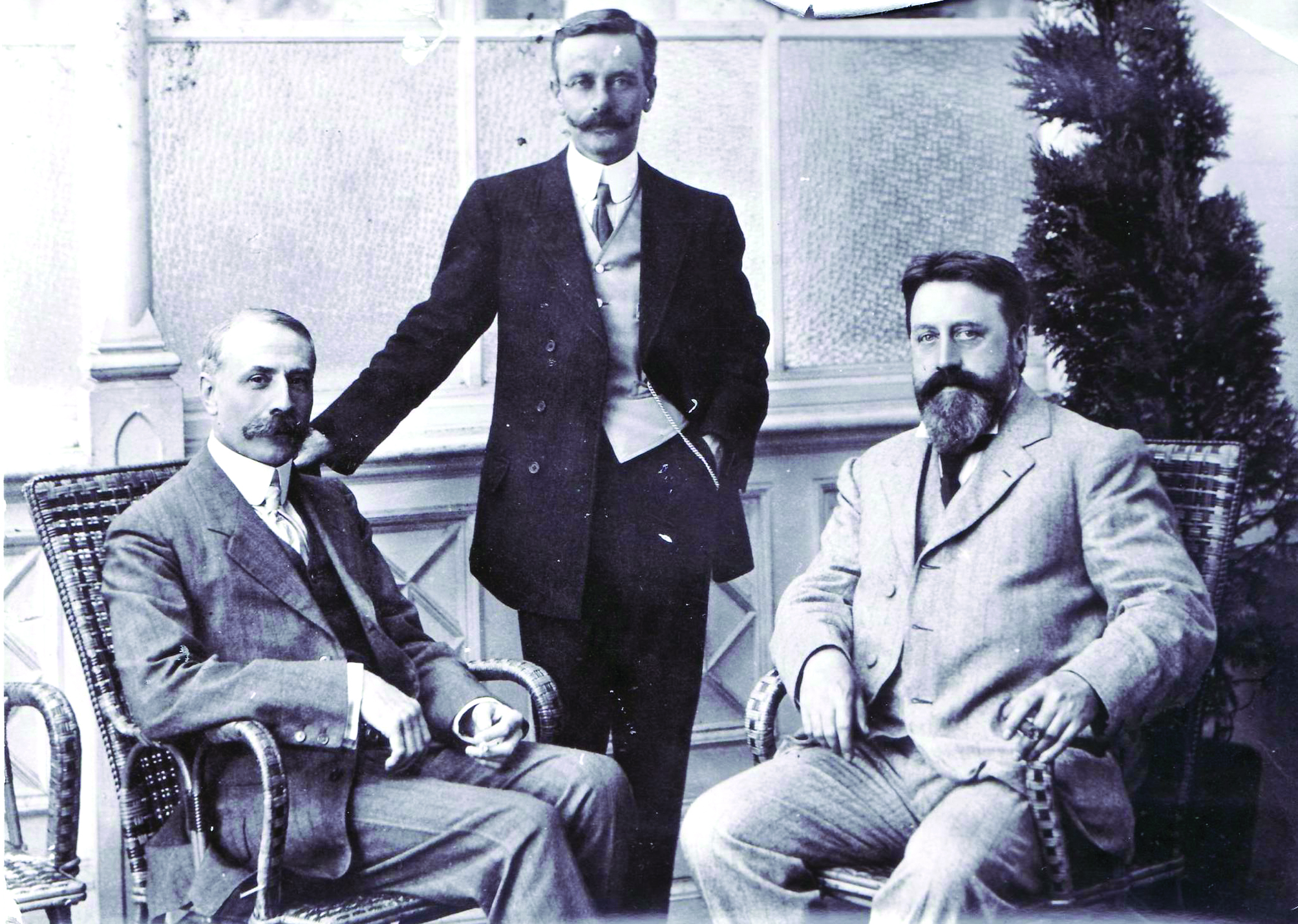 Edward Elgar trong một chuyến tới Yorkshire năm 1910 để tham gia Festival York và gặp gỡ Tertius Noble và nhà soạn nhạc Bantock (bên phải). Nguồn: The Craven Herald.