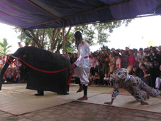 Quân hai người lên ngựa đấu bằng roi tre dài một mét.
