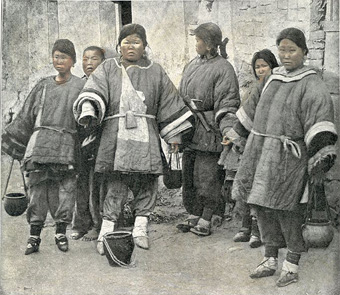 ![]() Nhóm người phụ nữ bị bó chân, nhưng vẫn phải làm việc vất vả |