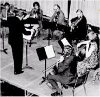 ![]() Weisskopf đang chỉ huy một dàn nhạc thính phòng trình diễn Concerto Brandenburg Số 3 của Bach. (1974) |