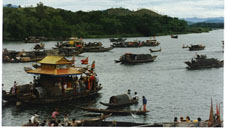 Vu Lan Huế đơn giản và hồn nhiên như con thuyền ngược giòng Hương Giang qua chùa Linh Mụ trầm tư quán tưởngï rồi bỗng ca nhạc vang lừng xanh đỏ thẳng tay chèo đến điện Hòn Chén nhảy muá lên đồng, đến nỗi cái nhìn của người Phật tử chân chính, của qúi ôn quí thầy lắm khi trở nên nghiêm khắc đối với hiện tượng gần như lạc hướng này.